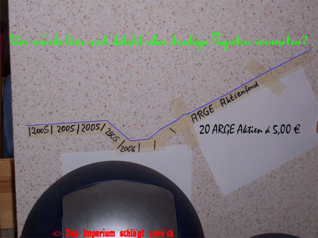 Als besonders ansprechend könnte auch das Muster einer vorgetäuschten Aktien-Gewinnentwicklung (3) gelten. Wer achtet hier noch Flecken auf der Tapete. Der Gast wird begeistert die massive Zunahme der Aktienwerte verfolgen, die durch die Schaffung von 1-Euro-Jobs und Abnahme sozialpflichtiger Beschäftigung entsteht.