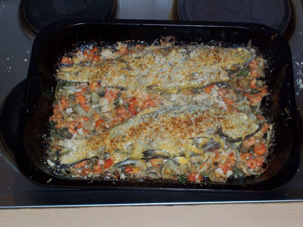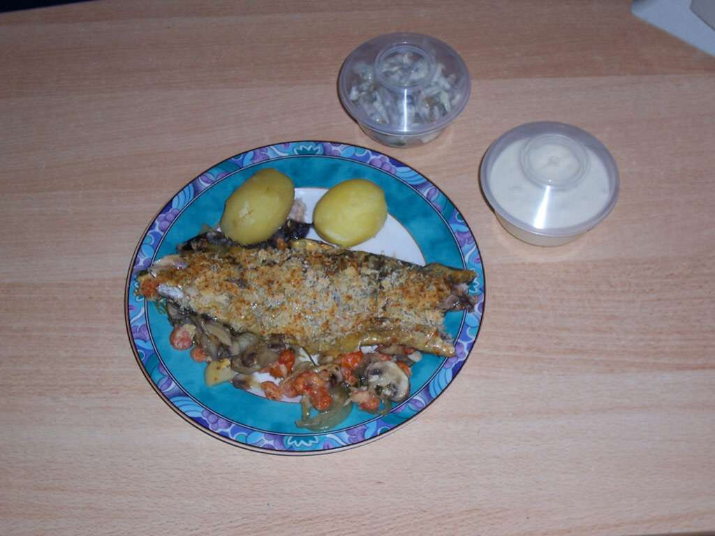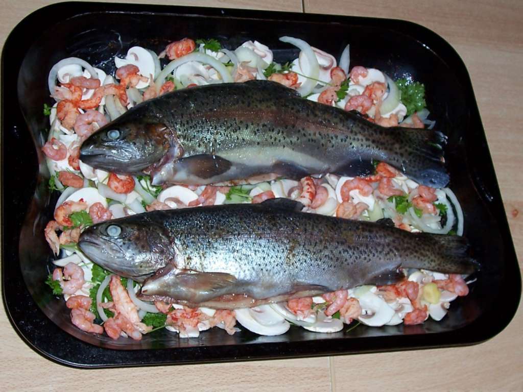 z.B. ''Iserlohner Stadtteich-Forellen auf Champignon-Krabben-Bett''