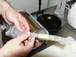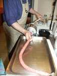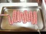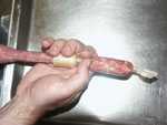 Eine preiswerte Alternative ist in jedem Fleischereifachhandel zu bekommen: Naturdarm in Kombination mit Haushaltsgummibändern.