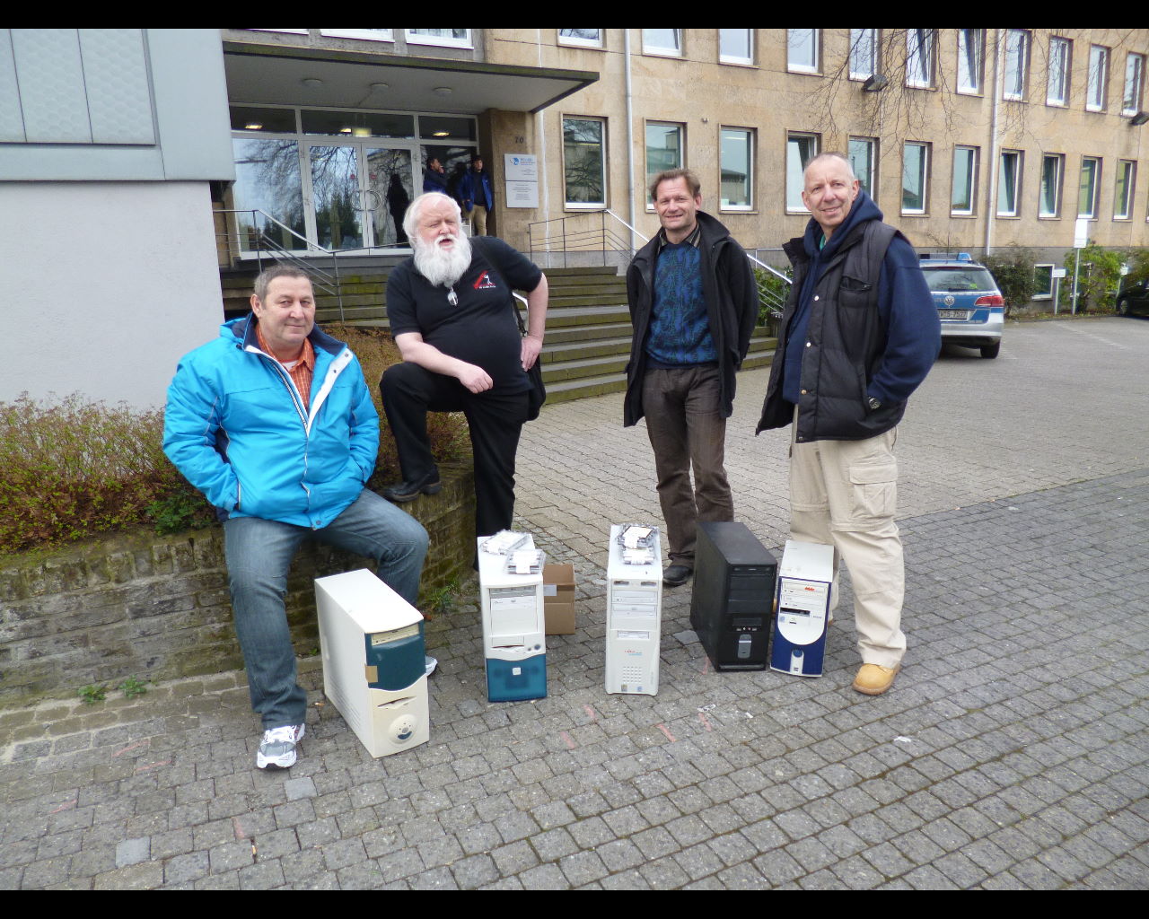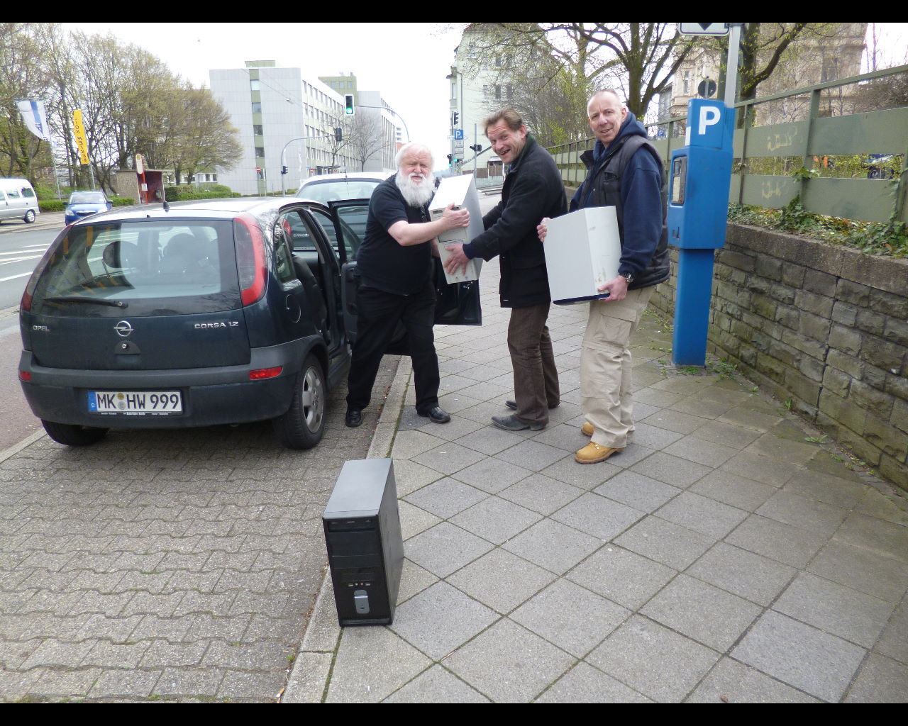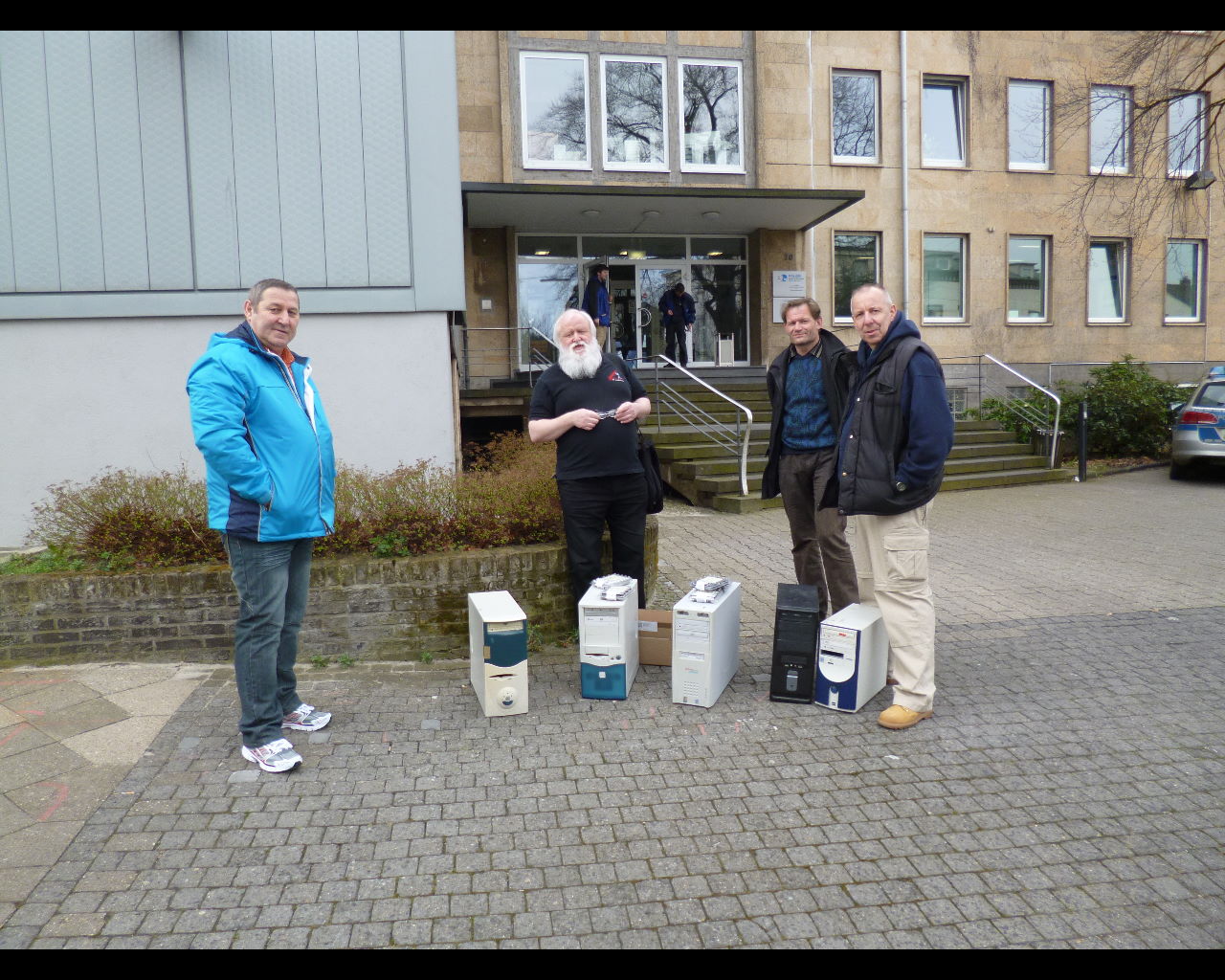 02.12.2013 Beschluss_vorlaeufige_Sicherstellung 02.12.2013 Anklagegeschrift 17.03.2014 153 Tage und zwei Rückfragen später kam endlich eine Kurzmitteilung, dass die PCs abgeholt werden können. Bei der Durchsuchung der Festplatten wurde nichts Belastendes gefunden. 21.03.2014 Mit fünf Personen holten wir die fünf Rechner und die Festplatten bei der Polizeiwache Iserlohn ab. Beim Einladen ist im Hintergrund das Jobcenter Märkischer Kreis sichtbar. 10.06.2014 8 Monate = 244 Tage nach der Hausdurchsuchung wurden die konfiszierten und gespiegelten Festplatten endlich überprüft. Der Auswertungsbericht wurde fertiggestellt. Hinweise auf eine streitgegenständliche Datei wurde nicht gefunden. Acht Monate! 18.06.2014 Staatsanwaltschaft Hagen