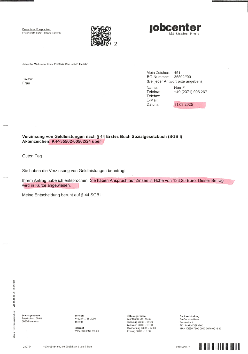 11.03.2025 Verzinsung von Geldleistungen nach § 44 SGB I